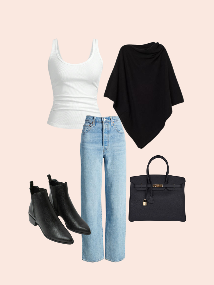 A jacket, coat, or stylish cape/poncho thrown over a simple base immediately changes the whole look. Outerwear is the most dominant piece that carries your style signature and defines the overall vibe of the outfit.