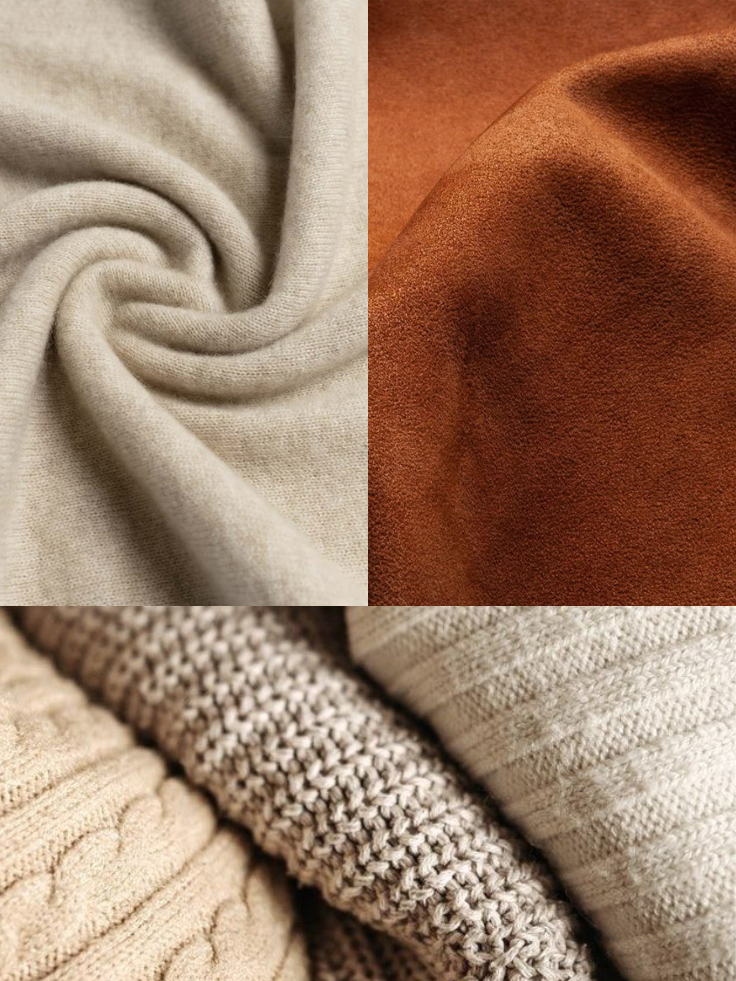 Materials such as suede, wool, and cashmere will add richness and a sense of luxury to simplicity.